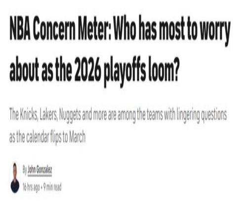 在常規賽進入衝刺階段,季後賽很快就將到來之際,美媒《cbssports》根據現狀評選出8支最該焦慮的球隊,並按照10分製給出具體分數,其中火箭第7騎士第6,湖勇兩隊攜手殺入前三,快船隊焦慮指數爆表高居第一。