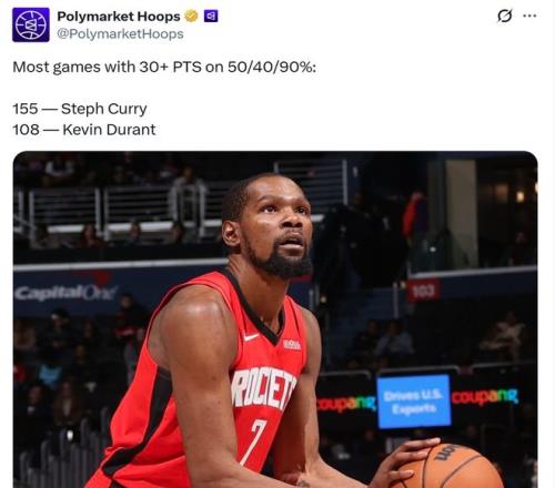 同時本場比賽杜蘭特效率再度達到“180俱樂部”標準,即三項命中率至少達到50/40/90%。