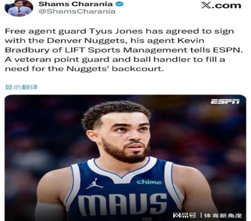 知名爆料人Shams透露,泰厄斯 - 瓊斯已正式確定加盟掘金。隨後,掘金隊隨隊記者Durando進一步披露,瓊斯與掘金簽下的是一份底薪合約期限直至本賽季結束。