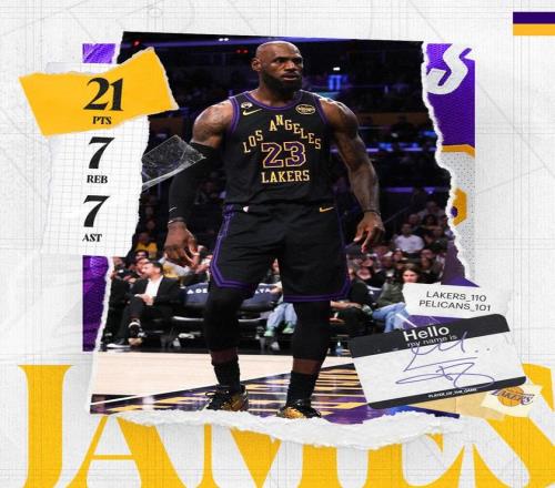 詹姆斯末節得到了3分1板3助攻2蓋帽,他在第4節依靠著傳球和防守幫助湖人笑到了最後。據統計,這是詹姆斯第966場比賽至少20分5板5助,曆史斷檔第一,大O奧斯卡羅伯特森613場位居第二。