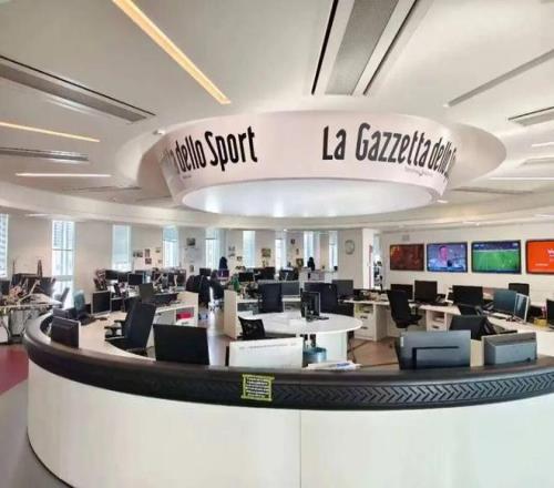 RCS傳媒集團的辦公區是一個由數棟樓宇組成的園區,其中包括一棟數十層的摩天大樓,是這個區域最高的辦公樓了。《米蘭體育報》的辦公區域並不大,占據了一個低矮樓宇的整整第三層。