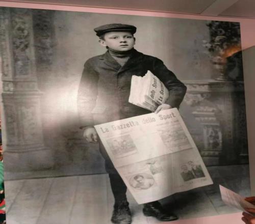 《米蘭體育報》誕生於1896年4月3日,創刊當日就報道了即將在雅典舉行的首屆現代奧林匹克運動會。它比AC米蘭俱樂部創立還要早3年。在會議室門口張貼的一張老照片上,一位英俊的報童手裏拿著一份打開的《米蘭體育報》,腋下還夾著一遝報紙。那是他在兜售《米蘭體育報》的創刊號。