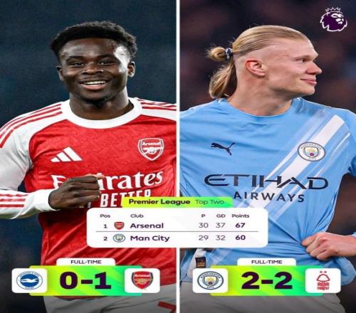 英超第29輪,誌在爭冠的曼城在保級隊身上栽跟頭,本輪被諾丁漢森林逼平送出關鍵積分。另一邊,阿森納雖踢得驚險,但還是成功戰勝布萊頓,成功收下三分。此輪戰罷,阿森納以多賽一場、領先7分的優勢強勢領跑積分榜,爭冠形勢一片大好。反觀曼城,手握控球和射門優勢卻遲遲無法終結比賽,到手的三分變一分,使得自己與榜首阿森納的差距拉大。