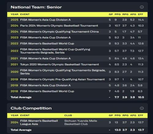 本賽季31歲的老將王思雨代表四川女籃出戰12場比賽,場均23.2分鍾,拿到9.8分6.2助攻3.3籃板1.5搶斷0.4蓋帽,命中率47.4%,三分命中率32.2%,她在聯賽的表現很一般不過她的身體狀態已經比去年更佳,宮魯鳴也應該是看中她的突破能力。