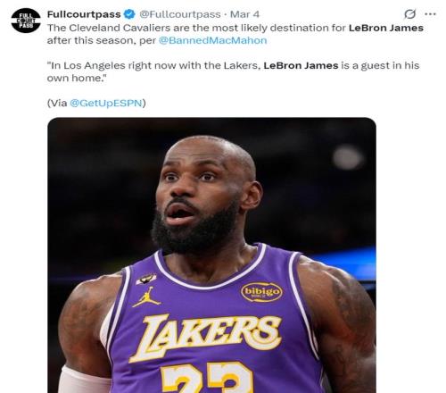 根據ESPN記者麥克梅納明的說法,在本賽季結束後,詹姆斯最可能加盟的球隊是克利夫蘭騎士隊。勒布朗在湖人的處境就是湖人的副駕駛都坐不下了,因為副駕駛是裏夫斯的位置,詹姆斯已經被擠到後座了。