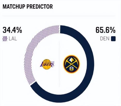 賽前,美媒ESPN對本場比賽進行了勝率預測,掘金隊勝率高達65.6% ,湖人勝率則僅有34.4% ,對比非常明顯 。