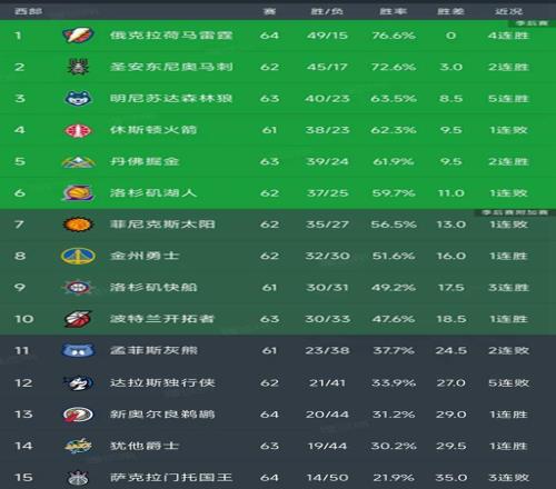 北京時間3月6日,今日的NBA常規賽結束了所有比賽,海角HJDO43.CCM看看西部的最新排名變動!