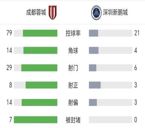 賽後統計,蓉城的控球率高達79%,轟出了29次射門,各項數據全麵碾壓,展現了爭冠熱門的強勁實力。