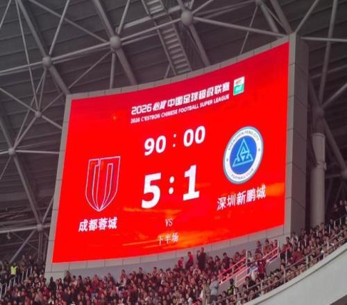 全場比賽結束,成都蓉城主場5-1大勝深圳新鵬城,在新賽季揭幕戰豪取3分,登頂中超第一!