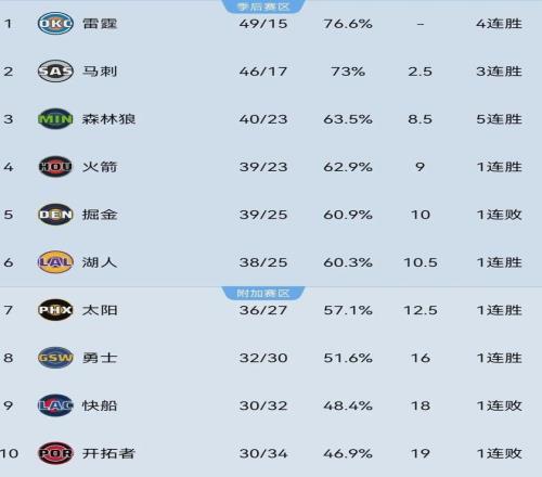努努力,西部前三甲大有希望;掉隊的話,殘酷的附加賽大門正在招手。