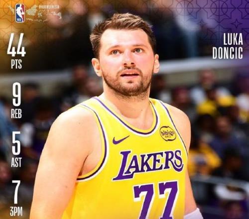 3月7日,湖人128比117擊敗步行者,本場比賽,東契奇效率全開,出戰31分鍾,全場25投14中,貢獻44分9籃板5助攻。