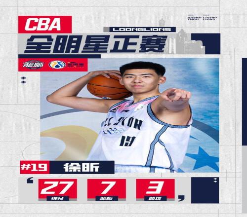 徐昕替補出戰全明星正賽,拿下27分7籃板3助攻,17投13中,效率驚人!幫助南區明星隊擊敗北區,首次全明星之旅即閃耀全場!