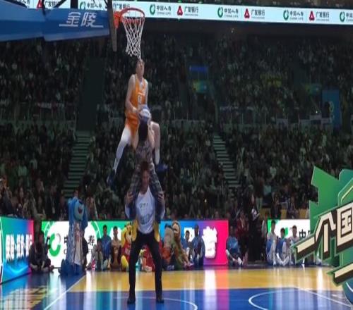 扣籃大賽最後一個亮相,劉禮嘉、外卡球員張鼎岩、餘澤辰參加。第一個出場的是劉禮嘉,第一個扣籃拿到41分,第二個扣籃拿到41分,總分82分。第二個出場的是張鼎岩(外卡球員),他第一扣飛躍疊羅漢的兩人,用平筐反扣拿到50分;第二扣表演“蠍子擺尾”又拿50分。第三個出場的是俞澤辰,第一扣打側沿空接反扣拿到50分,第二扣空接轉體再拿50分,和張鼎岩進入加賽。