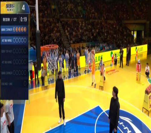三分大賽決賽第二個打響,胡明軒、曾淩鉉、於米提參加。第一位出場的是胡明軒,他第二個、第五個點位全中,花球點位5中3,最終得分22分;第二位出場的是曾淩鉉,花球點位5中4,但最後一個點位隻進2個,最終拿到21分;第三位出場的是於米提,他花球點位5中4,超遠三分轟進,最終成績22分,打平胡明軒進入加賽。