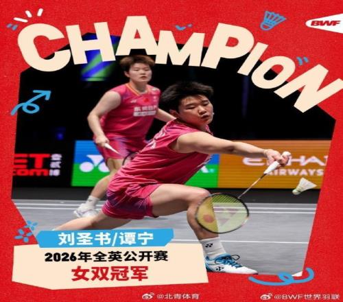 羽毛球全英公開賽女雙決賽,譚寧/劉聖書2比0戰勝李紹希/白荷娜,奪得冠軍。比分:21比18、21比12。