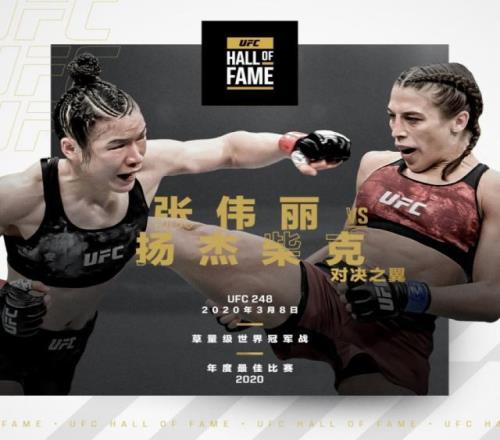 UFC官宣,張偉麗vs喬安娜(UFC 248)入選2026年UFC名人堂“對決之翼”,成為UFC曆史上首場入選名人堂的女子比賽。這場比賽兩人激戰五回合,共打出351次有效擊打,創下UFC女子賽事單場紀錄、冠軍戰曆史第三高。最終張偉麗分歧判定獲勝衛冕,該戰被公認為八角籠最偉大比賽之一。名人堂儀式將於今年夏季舉辦。