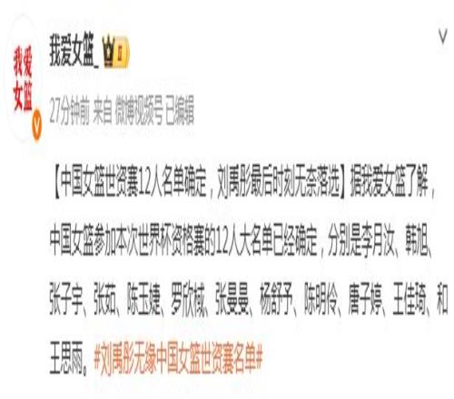 不過在韓旭與李月汝回歸之後,還有張子宇是重點培養對象,內線已經有3位大中鋒,因而劉禹彤落選也是可以理解。