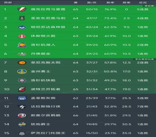 今日的NBA常規賽結束了所有比賽,西部最新積分榜如下!