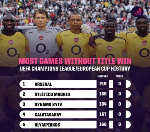 目前,阿森納在英超積分榜上處於絕佳位置,他們有望自2004年以來首次捧起英超冠軍獎杯。而在本周中,槍手的注意力將再次轉向歐冠賽場。無論是在現行賽製下,還是在歐洲冠軍杯時代,槍手從未染指過歐冠冠軍獎杯。