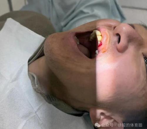 受傷後,高迪嘴裏含了塊棉花繼續上場比賽,一直堅持到比賽結束。賽後,隊醫陪著高迪去醫院進行了治療,先是給牙齒拍了個片子,然後進行了口腔縫合,一共縫了九針,“除了嘴唇破了之外,有三顆牙齒有點鬆動,疼得比較明顯。”