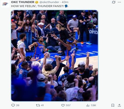 在命中這個準絕殺後亞曆山大雙手舉起來比了一個三分球的動作,他像當年韋德一樣不停揮手雙手,全場的球迷都在為SGA呐喊助威,這是屬於亞曆山大的夜晚。