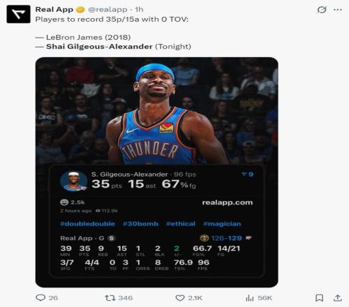 3.NBA曆史上拿到35+15+0失誤的球員隻有18年詹姆斯與26年SGA;