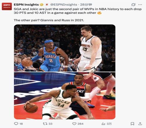 5.NBA曆史上隻有兩次敵隊情況下30+10助攻,21年威少/字母,26年約基奇/SGA;