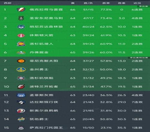 西部第一雷霆和掘金的對決蕩氣回腸,兩隊又打出了一場經典的對決,雷霆憑借亞曆山大的三分絕殺以129-126險勝掘金,豪取6連勝,以51勝15負穩居第一,領先了身後的馬刺3個勝場。掘金遭遇兩連敗,排名已經下滑到第6名,而且落後湖人0.5個勝場,落後火箭、森林狼都是1個勝場。