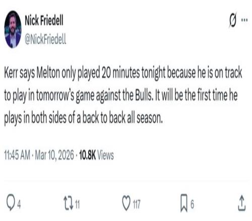 加上小庫裏、梅爾頓也都有著嚴格的上場時間限製,最終勇士隊才爆冷輸給明顯無底線擺爛的爵士隊。
