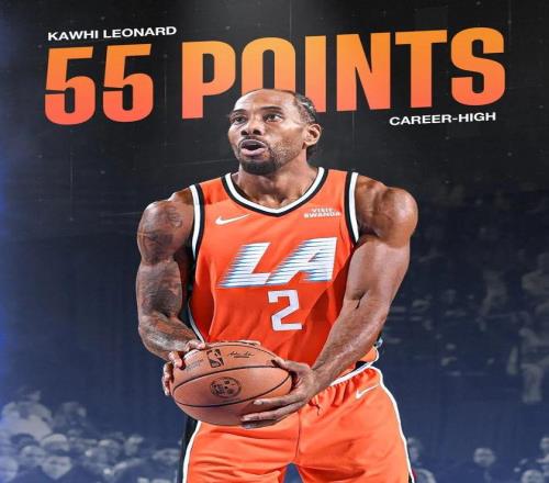 40+對於很多球星來說不算什麽,但是對於倫納德可就不多見了,他職業生涯一共隻打出過12場40+,其中1/3發生在過去37場比賽,包括生涯唯一一次50+和生涯第二高分45分。