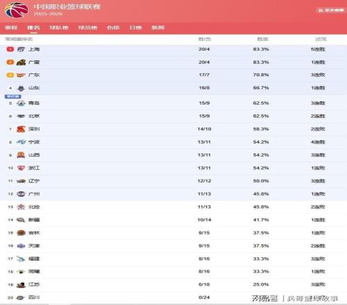 CBA25-26賽季常規賽第2階段戰火重燃,20支球隊向著總冠軍再度發起衝擊,比賽也是精彩紛呈,逆轉、爆冷不斷上演,CBA也是因此格局有了很大改變,現在咱們就來看看CBA的最新排名:上海反超廣廈登榜首,山東第4,北京升第6,遼寧掉到第11。