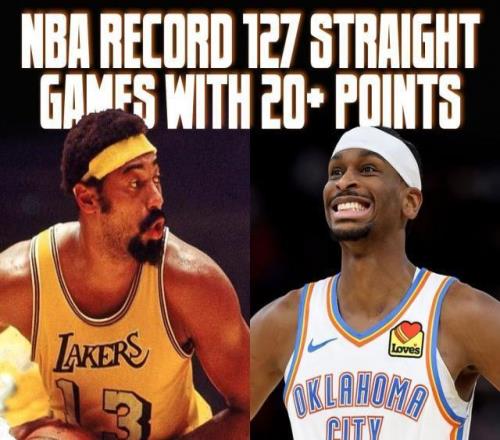 亞曆山大用連續127場比賽砍下20+詮釋了他的堅韌和穩健。更加難得的是,在這127場比賽中,亞曆山大幫助雷霆打出了103勝24負的驕人戰績,勝率達到驚人的81.1%。相比之下,當年的張伯倫在連續126場砍下20+期間,他所在的球隊戰績是66勝60負,勝率為52.4%。