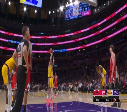 常規賽,湖人主場142-130戰勝公牛。
