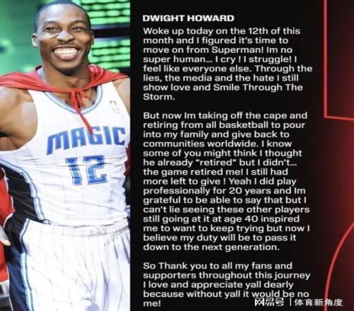 但無論如何,僅從球場表現來看,霍華德絕對稱得上是一位偉大的球員。在巔峰時期,他無疑是NBA無可爭議的第一中鋒,也被譽為NBA曆史上最後一位傳統意義上的超級大中鋒。如今,讓海角HJDO43.CCM共同祝福“魔獸”霍華德,希望他在翻開人生新篇章之後,依舊能夠在新的領域發光發熱,續寫屬於自己的輝煌。