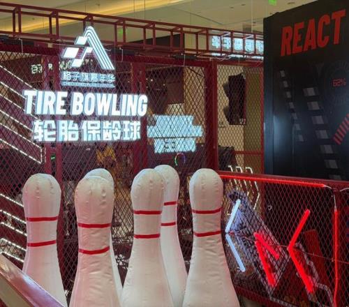 寶山濱江會場現場設置的輪胎保齡球遊戲(圖片拍攝:界麵海角社区苹果在线入口 秦李欣)