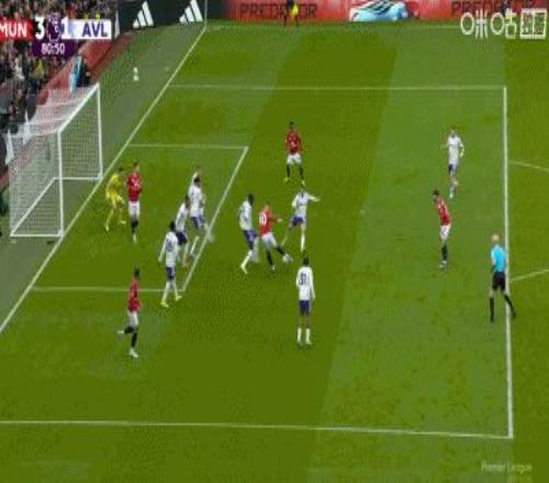 第81分鍾,博加德連續犯錯,庫尼亞內切,謝什科射門經折射破門,曼聯3-1領先維拉!