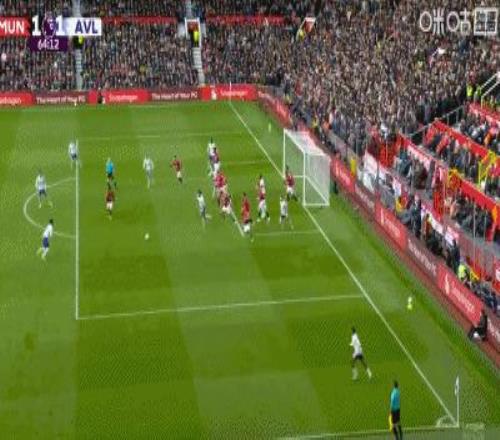 第53分鍾,B費開出角球,卡塞米羅前點頭球破僵,曼聯1-0領先維拉!