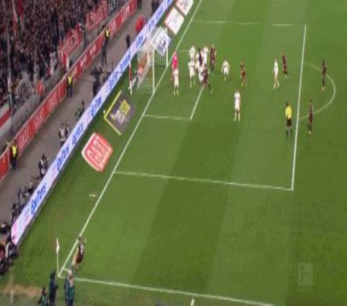 第90+2分鍾,萊比錫左路起球,奧爾班頭球擊中立柱