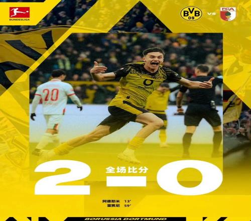 北京時間3月14日晚10點30分,多特蒙德主場迎戰奧格斯堡。上半場比賽,阿德耶米射門擊中對手門將達門麵部彈進球門,多特主場取得領先,拜爾、阿德耶米隨後擊中門框,與改寫比分失之交臂。下半場比賽,小將雷賈尼頭球破門,他也以18歲64天的年紀成為德甲曆史上最年輕的意大利進球者,達門貢獻多次撲救。最終,多特蒙德主場2比0擊敗奧格斯堡,將與拜仁的分差縮小至9分。