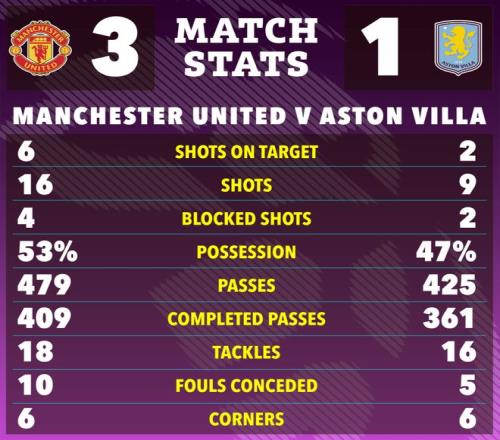 曼聯坐鎮老特拉福德主場3-1擊敗阿斯頓維拉,領先對手3分鞏固了英超第三的位置。上半場的場麵踢得非常沉悶,然而紅魔後發製人,下半場由卡塞米羅、庫尼亞和謝什科各入一球。隊長布魯諾·費爾南德斯完成兩次助攻,以16次助攻超越貝克漢姆保持的俱樂部單賽季助攻紀錄。