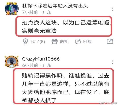 “掐點換人這塊,以為自己運籌帷幄,實則毫無章法”;“誰準換誰,過去幾年一直都是這樣,隻不過以前有大爹給他兜底而已,現在沒了,底褲都被人扒了”……