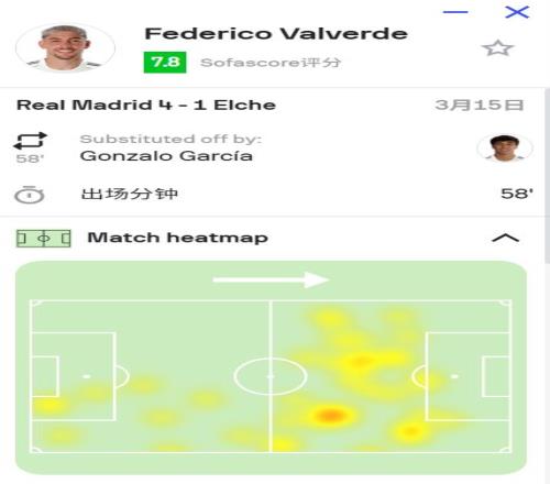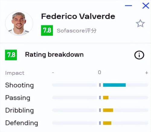本場比賽,巴爾韋德在第44分鍾打進一球,幫助皇馬擴大領先優勢。但進球隻是他全場出色發揮的一部分。