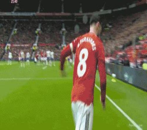 第53分鍾,姆伯莫禁區內左側小角度打門被馬丁內斯飛身撲出底線,B費前場右側開出角球,卡塞米羅甩開防守,搶到前點甩頭攻門將球頂進阿斯頓維拉的大門,曼聯主場1-0取得領先。