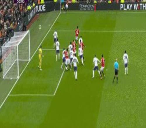 第38分鍾,曼聯球員B費禁區前沿過頂長傳,達洛特右路插上,停球之後起腳勁射,皮球高出橫梁。