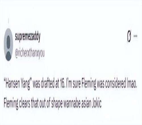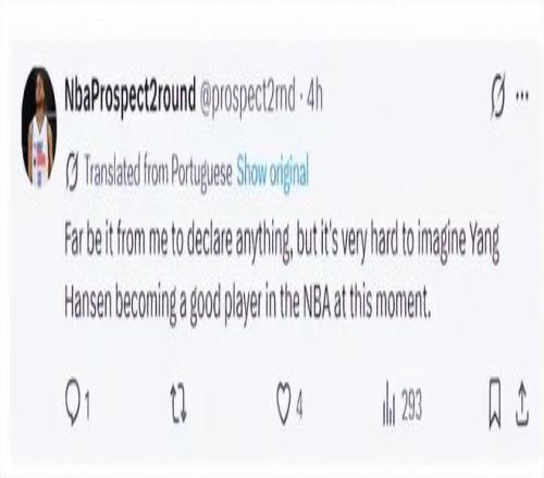 “我不想說太多,但現在真的很難想象楊瀚森未來會成為一名優秀的NBA球員。”