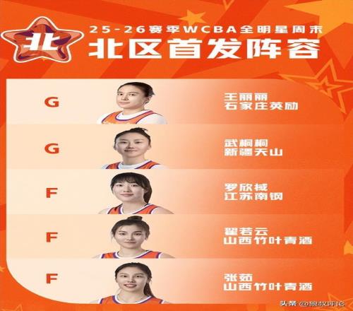 北區首發球員:王麗麗(石家莊英勵)、武桐桐(新疆天山)、羅欣棫(江蘇南鋼)、翟若雲(山西竹葉青酒)、張茹(山西竹葉青酒),武桐桐以134529票當選北區票王。