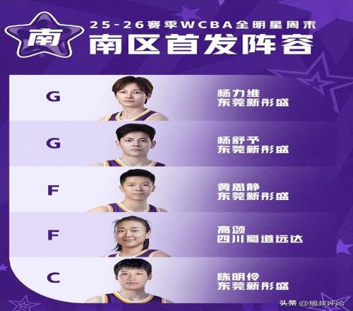 南區首發球員為:楊力維、楊舒予、黃思靜、陳明伶(東莞新彤盛)、高頌(四川蜀道遠達),楊力維以224706票成功當選票王。