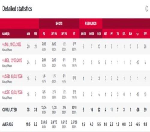 實則,李月汝除首場世預賽12中7高效得到21+10後,隨後三場依次是:11中2得到6+5+2,6中1得到2+3,5中3得到9+4。李月汝後三場世預賽表現不佳,場均隻有5.7分4籃板1助攻,外加場均送出2次失誤與2次犯規,投籃命中率低至22中6隻有27.2%,三分命中率同樣低至4中1僅有25.0%。
