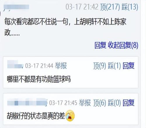 看到胡明軒這樣的表現,再對比陳家政本場比賽的遭遇,也就不怪賽後有球迷替陳家政打抱不平了:每次看完都忍不住說一句,上胡明軒不如上陳家政。