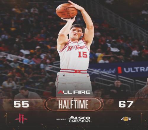 杜蘭特上半場迷失了,3投1中僅得2分2助攻2失誤,出球依然不夠快。湖人本來有機會擴大分差,第二節後半段開始浪。半場戰罷,湖人67-55領先火箭12分。火箭全隊三分球17中5,其中伊森3中0,杜蘭特和芬尼-史密斯都是2中0。